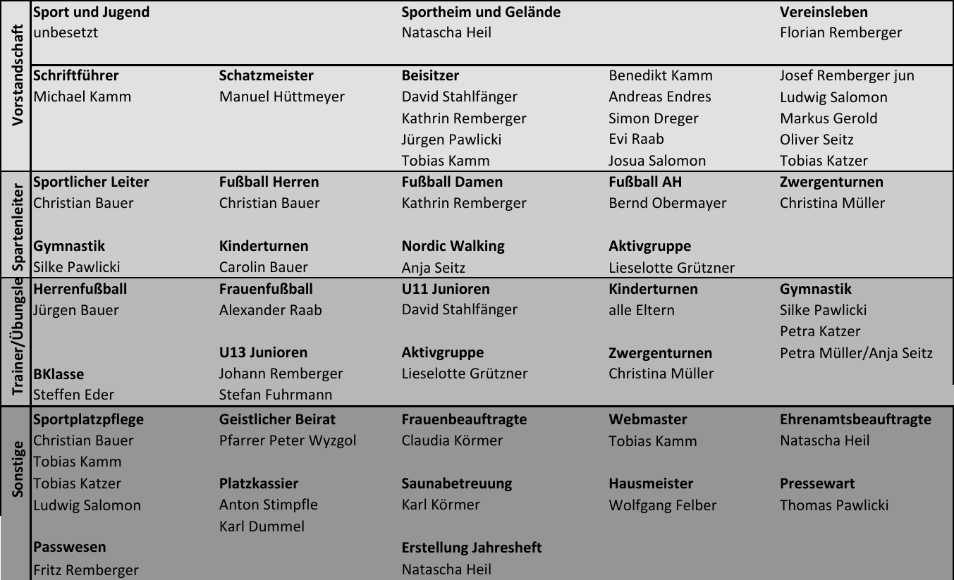 Hier ein Organigramm der Aufgabenverteilung und Zusammenstellung der Vorstandschaft.